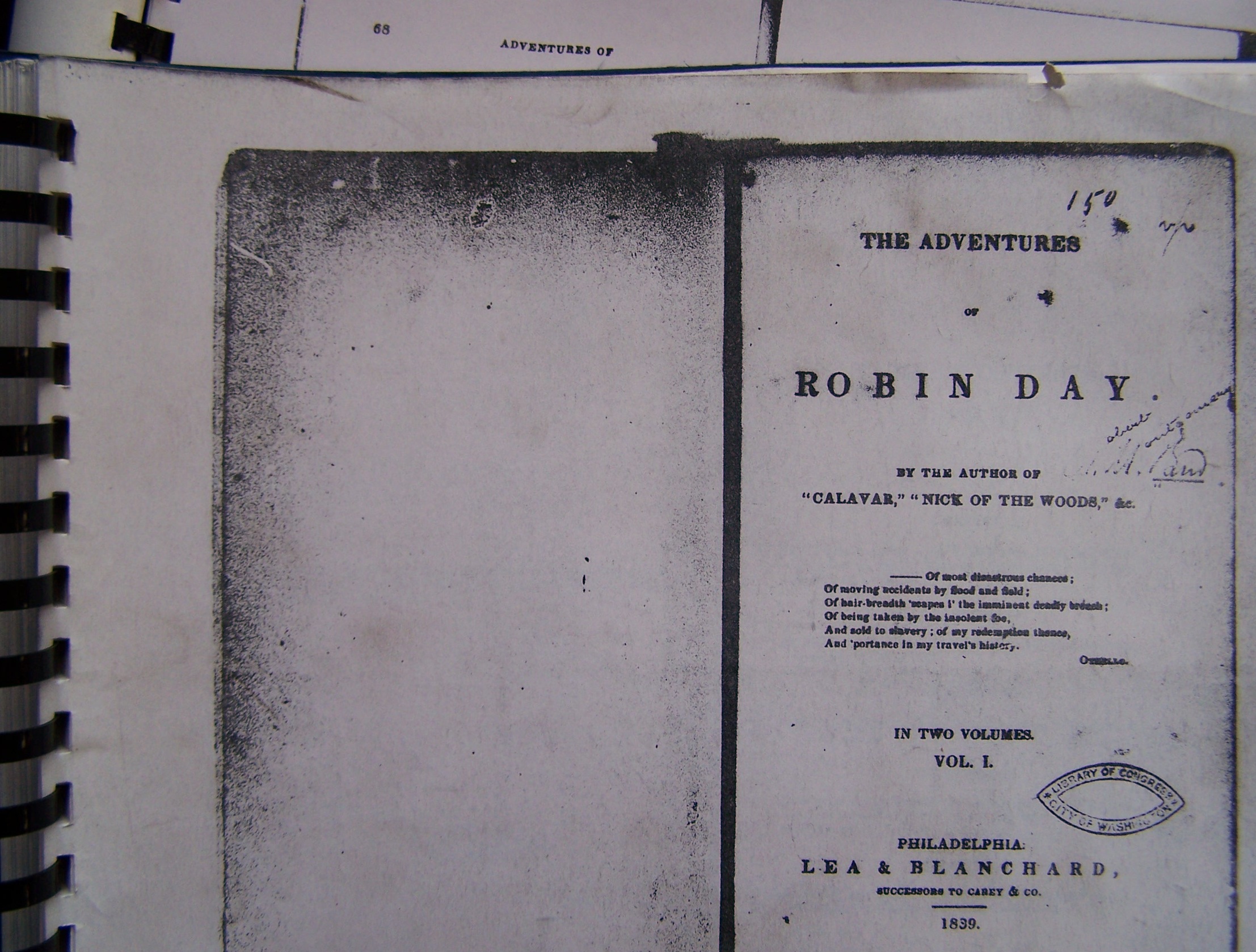 In 1992, while in grad school in English at Penn State, many of the more obscure American novels that I was interested in from the early 1800s were only accessible on microfilm. Pre Google book scanning, this required trudging to the basement of Pattee Library and looking at the books on screen. There was something quietly romantic about the entire process, especially untying the paper identification tag that secured the microfilm leader to the reel. Alone in the cool, dark library basement, you got the feeling you were also alone in the world, reading something–in this case Robert Montgomery Bird’s 1839 novel The Adventures of Robin Day–that no one else was even thinking about right now.